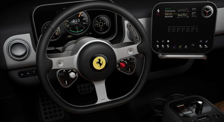 تجسد عجلة القيادة في لوس التوازن الذي تسعى إليه فيراري. تصميمها ذو الثلاثة فروع يذكر بعجلات ناردى الأسطورية من الخمسينيات والستينيات، بينما تدمج تقنيات حديثة.